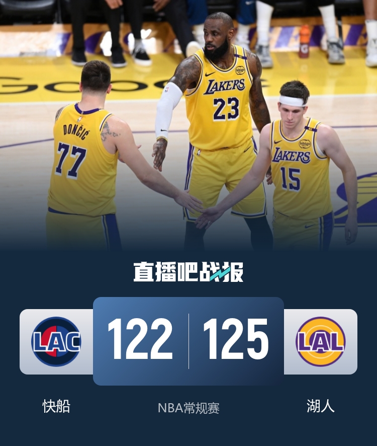 🏀湖人力克快船!东契奇38+6+11 里夫斯29+6 伦纳德31+5&伤退