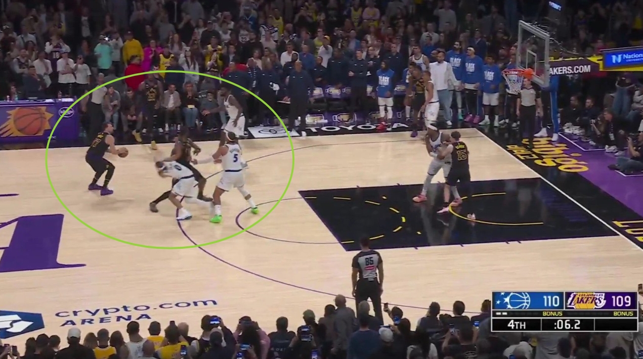 东契奇年夜空地迟疑了 詹姆斯接球回身三分绝杀没有中!