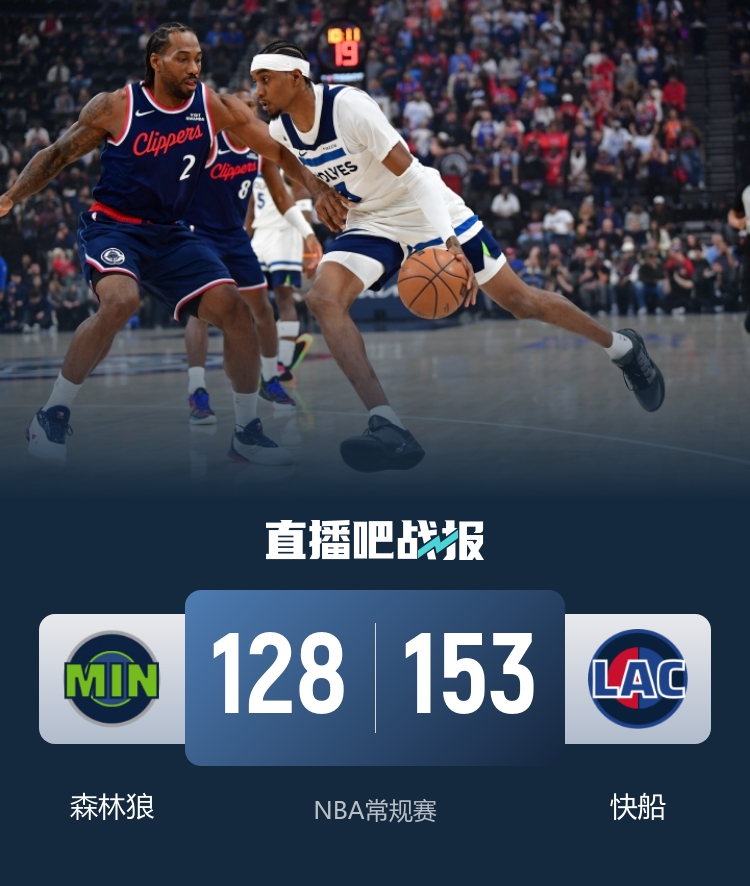 🏀快船狂轰153分大捷丛林狼 小卡20中15砍45+5+5 华子36+5
