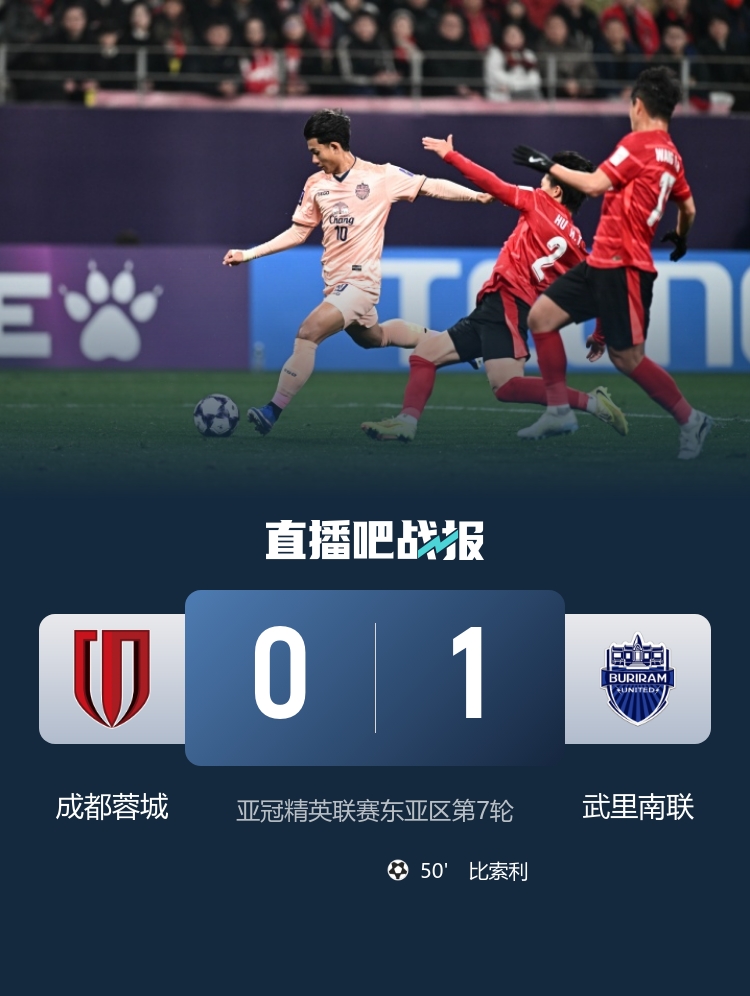 全场角逐停止,成王人蓉城0-1没有敌武里南联。